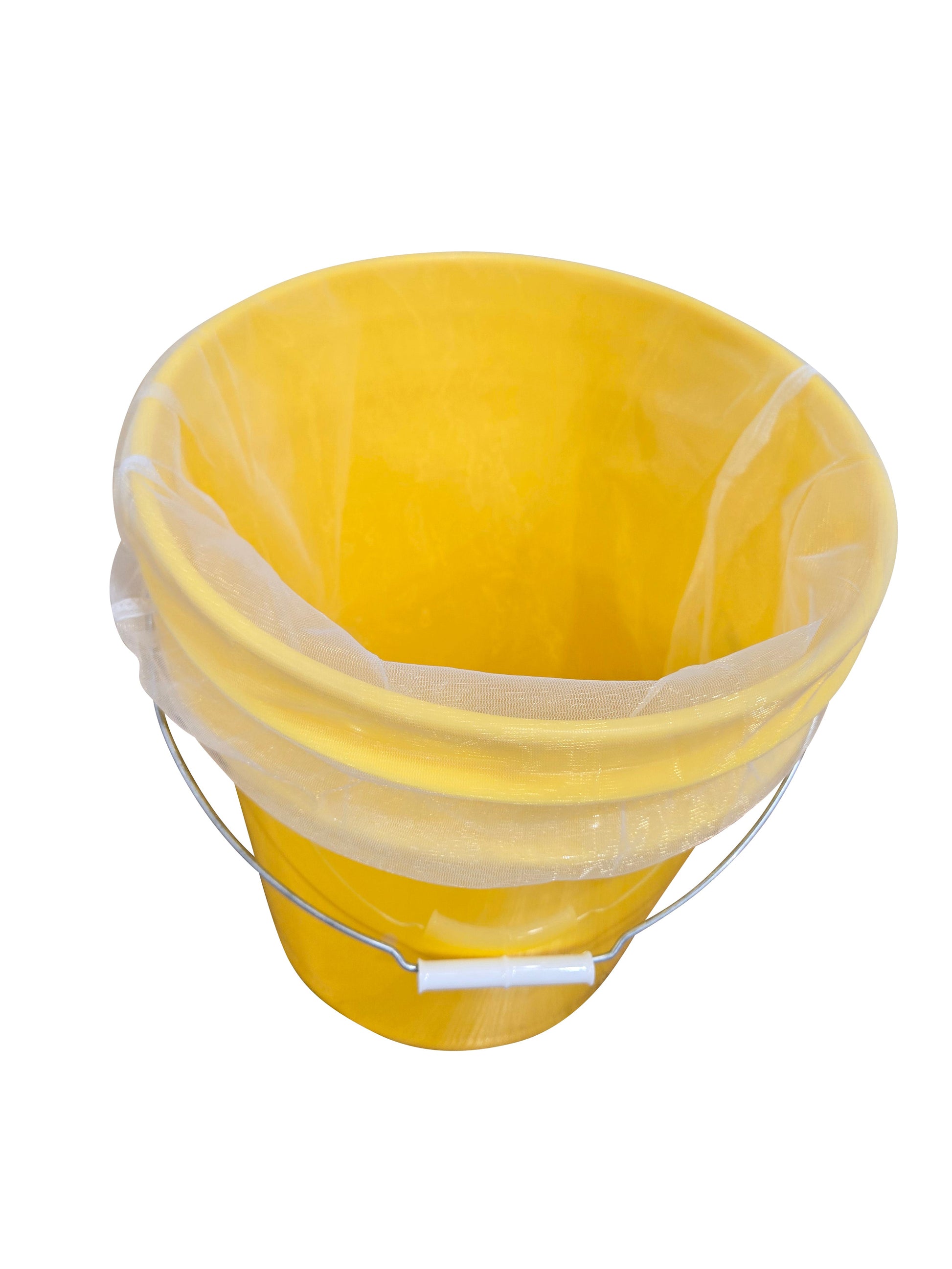They fit neatly into a 5 gallon pail and have an elastic band that holds it in place around the outside edge of the bucket.